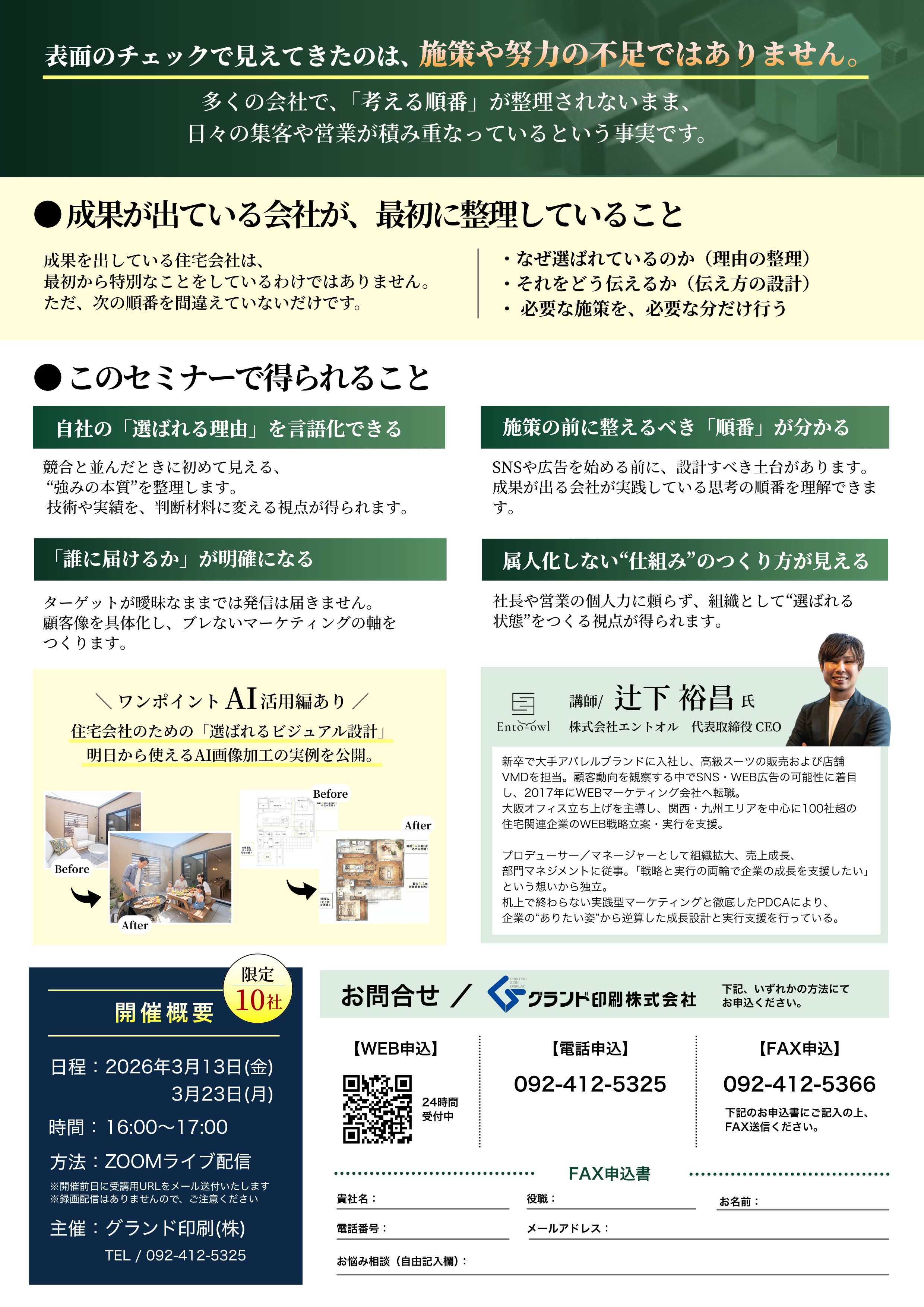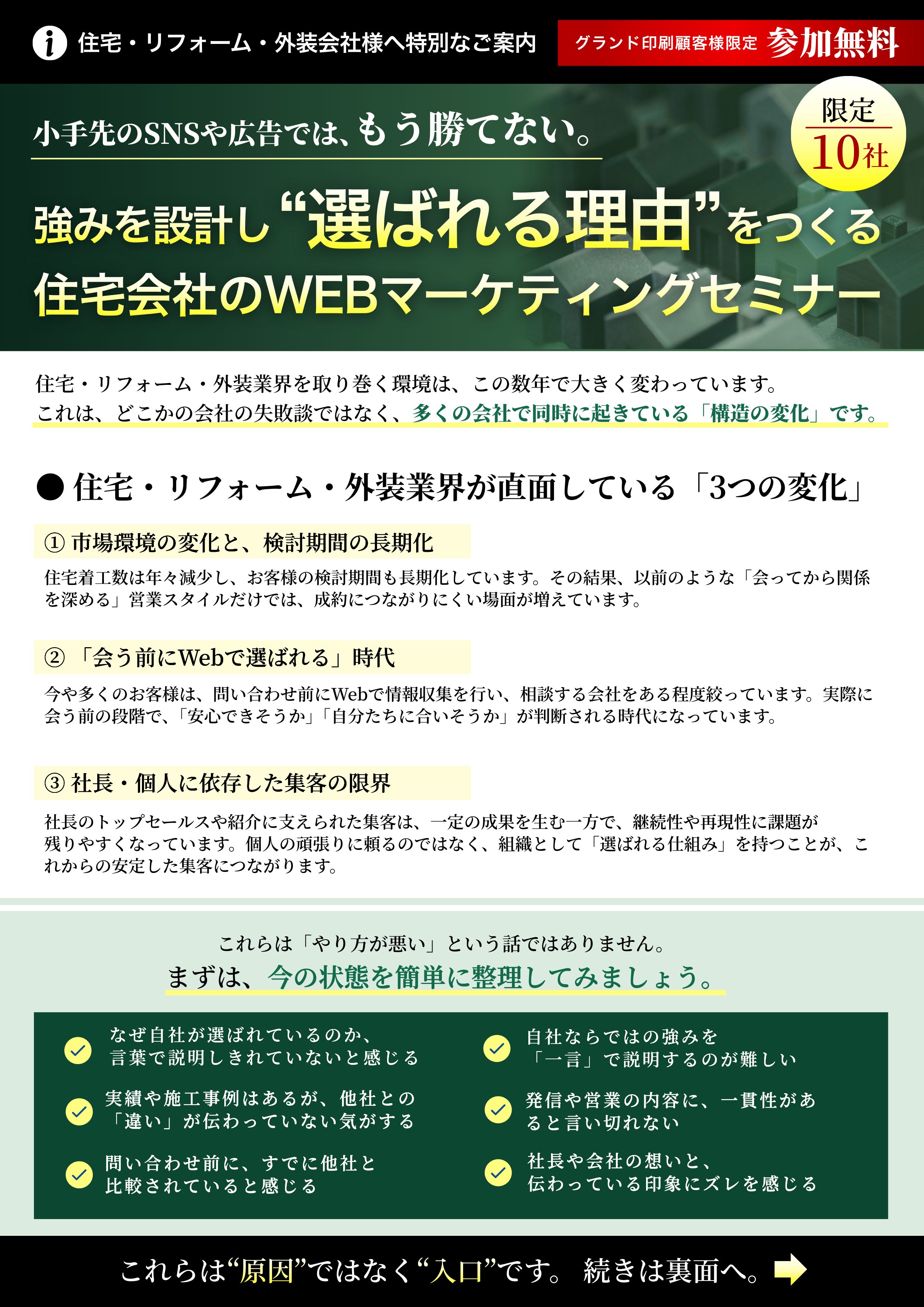 【3/13(金)、3/23(月)16時~】住宅会社のWEBマーケティングセミナー|強みを設計し“選ばれる理由”をつくる